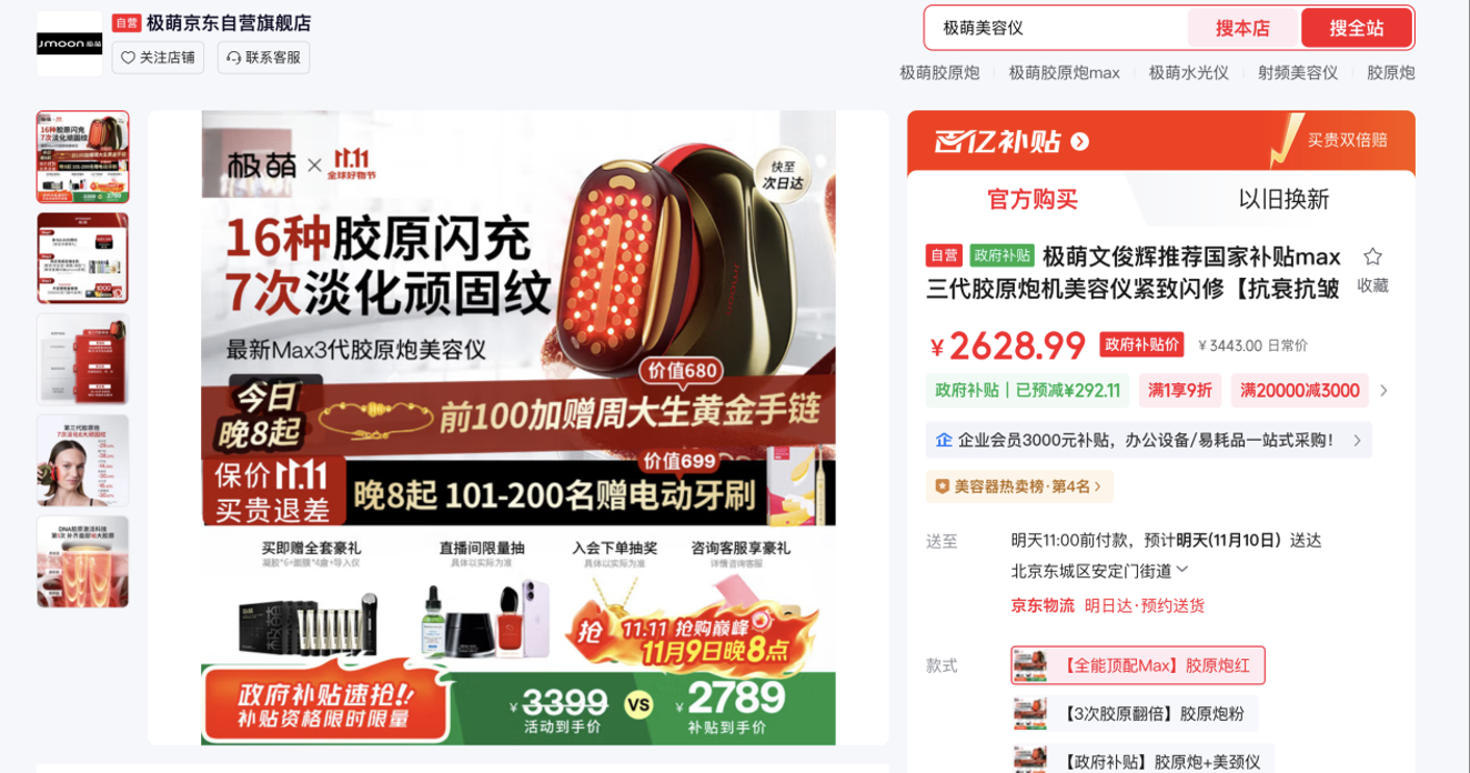 肌肤护理同样需要专业装备。极萌max三代胶原炮机美容仪,采用超光子胶原促生科技,񌾹次补全全脸所需�种胶原,还能提拉紧塑,解决脸部下垂问题,补贴后到手�.99元,购买还赠面񑀜盒、凝񐦢支和导入仪,保�.11,让您安心享受专业级家居护理。