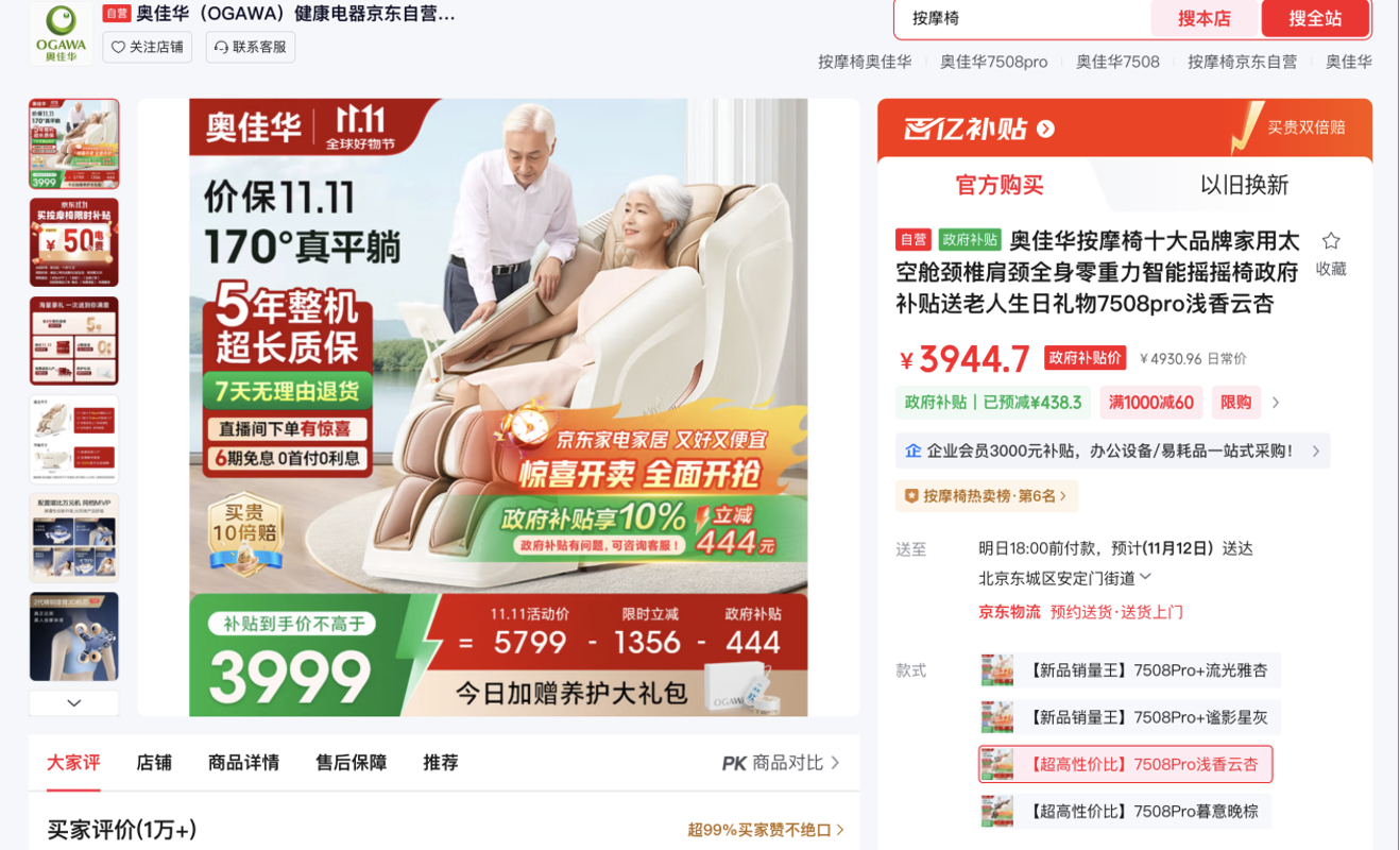 奥佳�pro按摩椅,为您开启居家养生新体验。这款按摩椅首创灵动SL导轨,随身而动,任何角度始终贴合,更�°悬浮平躺,强拉伸超贴合。采用精钢摆񑆗D机芯,如同人手般灵活,22套专家主推程序媲美专业按摩技师,在熟悉的家中也能享受星级SPA的舒适感受。京�.11期间,咨询客服领�元优惠券,补贴后到手价仅�.7元,下单𱊳年整机超长质保,加赠养护大礼包,还可𱊴期免息分期,让品质生活触手可及。