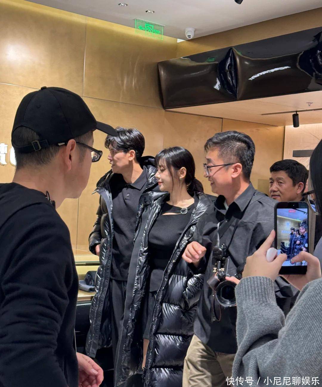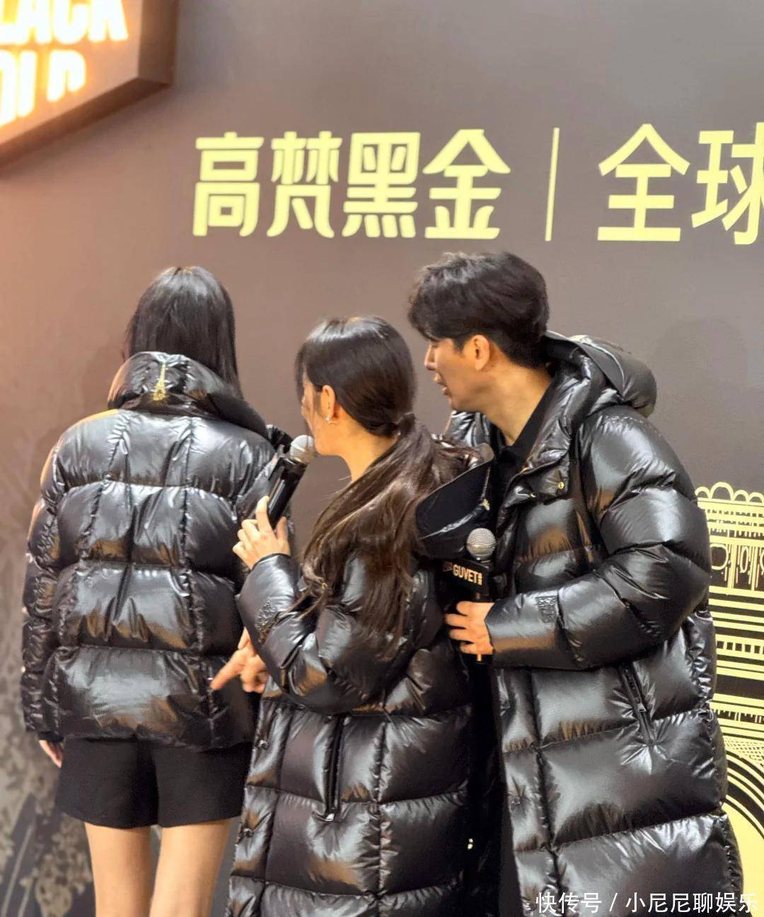 俩人穿的是同款黑色亮面羽绒服,那种又厚又亮的料子,把人衬得更显臃肿。秋瓷炫扎了个低马尾,刘海微卷,脸上没啥妆,灯光直打,脸看起来油亮亮的。嘴角因为说话有点歪,下巴也圆了一圈,整个人跟以前那个冷白皮大美女判若两人。